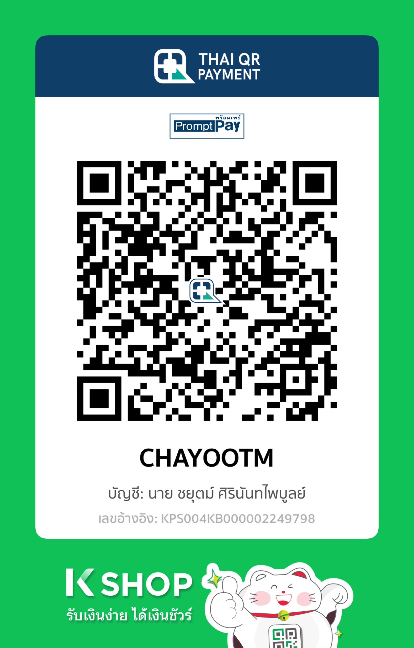 » ชื่อบัญชี K Shop CHAYOOTM